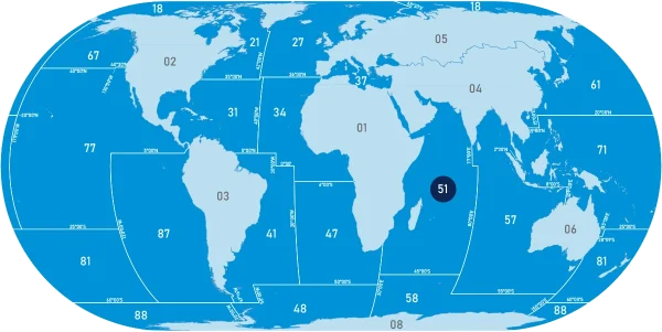 La zone FAO 51 se situe dans l’Océan Indien et correspond à la zone occidentale.