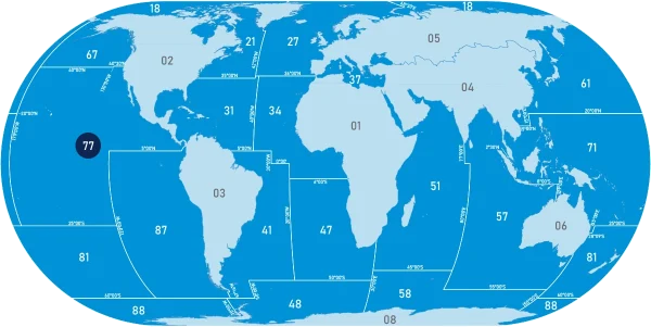 La zone FAO 77 se situe dans l’Océan Pacifique et correspond à la zone centre-est.